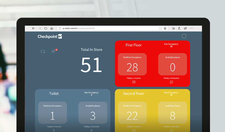 Mitarbeitende und Filialleiter können online oder über ein Tablet im Laden auf die Belegungsinformationen zugreifen. Visuelle Farbanzeigen auf dem Tablet ermöglichen dem Personal, auf einen Blick einen möglicherweise überschrittenen Schwellenwert zu erkennen: Rot zeigt an, dass das Geschäft seine Kapazität erreicht hat. Gelb bedeutet, dass die Belegung fast erreicht ist, bei grau sind keine Belegungswarnungen notwendig. Bei zu hoher Belegung wird eine zusätzliche Warnung an das Ladenpersonal gesendet, damit dieses angemessen reagieren kann.