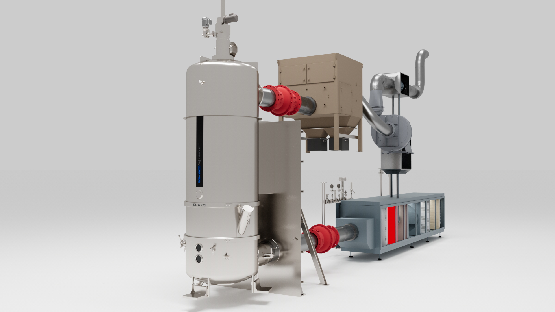 The HRS Heat Recovery System is very easy to implement in all new machines belonging to the Romaco Innojet VENTILUS® product family and IGL series. The system can also be retrofitted. At the InnoTech laboratory in Steinen, Germany, a V 150 featuring an integrated heat recovery system is available for product trials. A pharmaceutical manufacturer from southern Germany is the first to use the technology in practice – in a VENTILUS® processor with a maximum batch volume of 900 liters.