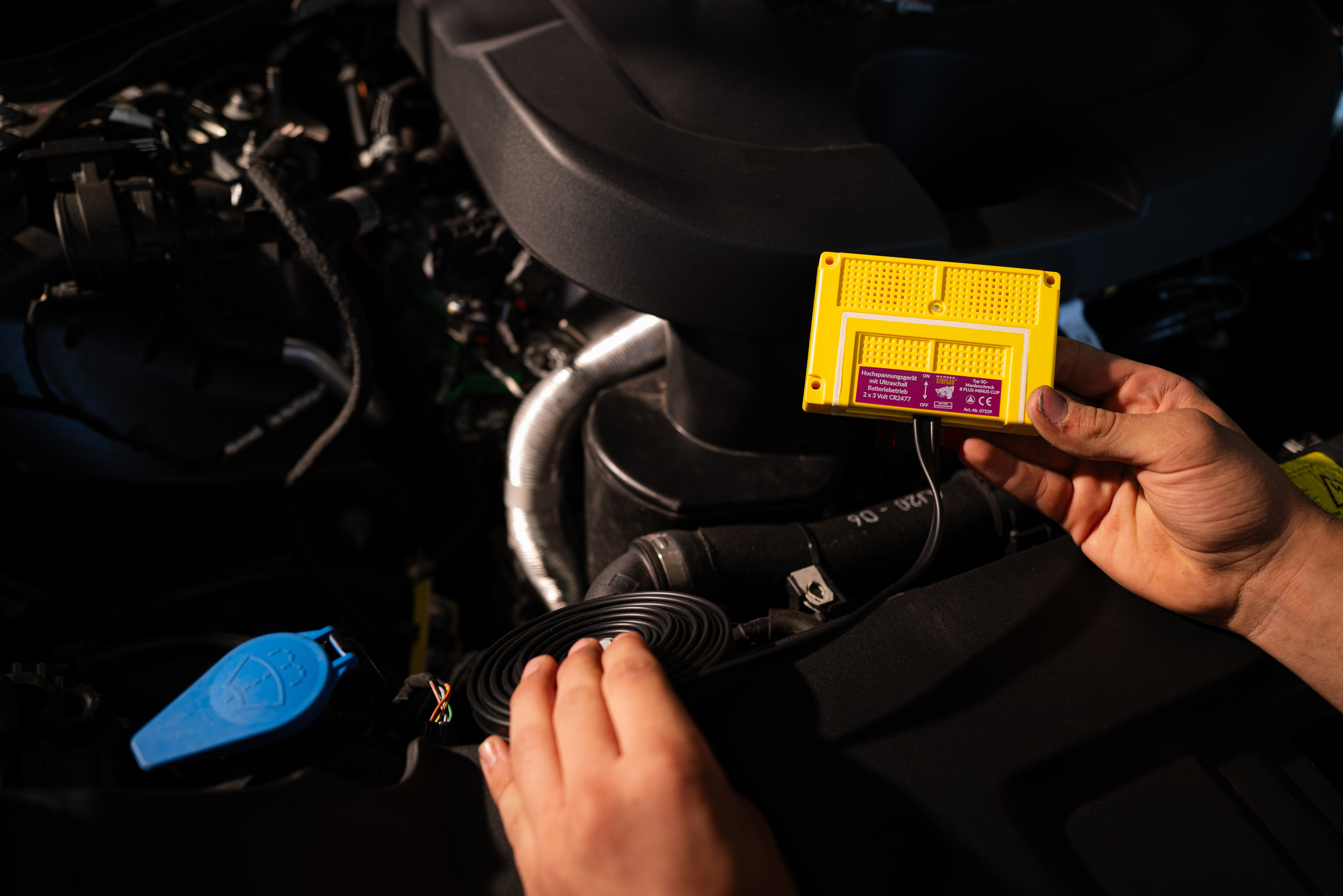Das aktualisierte System behält alle bewährten Eigenschaften bei: Sechs doppelpolige PLUS-MINUS CLIP Edelstahlkontaktplatten geben dem Marder bei Berührung einen ungefährlichen, aber wirkungsvollen elektrischen Stromschlag ab – ähnlich dem Weidezaunprinzip. Zwei wasserfeste Hochleistungs-Lautsprecher mit einem Abstrahlwinkel von über 170° senden zusätzlich frequenzmodulierte Ultraschalltöne mit 110 dB aus, die für Marder wie Angst- und Warnschreie klingen. „Die Clip-Technologie ist ein weiterer wichtiger Pluspunkt für die Werkstattpraxis", erläutert Winkler. „Sie ermöglicht eine werkzeuglose Installation und einfache Erweiterung des Systems für größere Motorräume.“ Das Gerät ist nach IP65 zertifiziert und damit staubdicht, spritzwassergeschützt und feuchtigkeitsbeständig. Es verfügt über eine E1-Kennzeichnung des Kraftfahrt-Bundesamtes und bietet eine außergewöhnlich lange Batterielaufzeit von bis zu 18 Monaten. Wie alle STOP&GO Marderabwehrgeräte ist es mit einer Gewährleistung von vier Jahren ausgestattet.