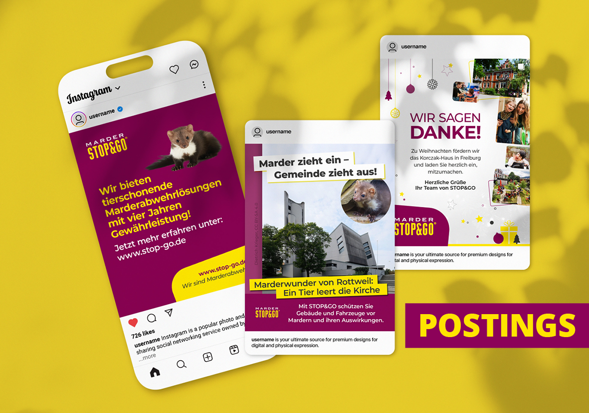 Unter der Marke STOP&GO Marderabwehr entwickelt und vertreibt die Norbert Schaub GmbH innovative, tierschonende Lösungen zur Marderabwehr. Carta erhielt den Auftrag, die Marke im Wettbewerbsumfeld klarer zu positionieren, die Markenfarbe als primären Wiedererkennungsmerkmal zu verankern und die öffentliche Präsenz über alle relevanten digitalen und analogen Kanäle konsistent auszubauen. Ziel war eine stringente, medienübergreifende Markenführung, die Sichtbarkeit, Wiedererkennung und Vertrauen stärkt und STOP&GO Marderabwehr als verantwortungsbewusste, führende Marke im Markt nachhaltig festigt.